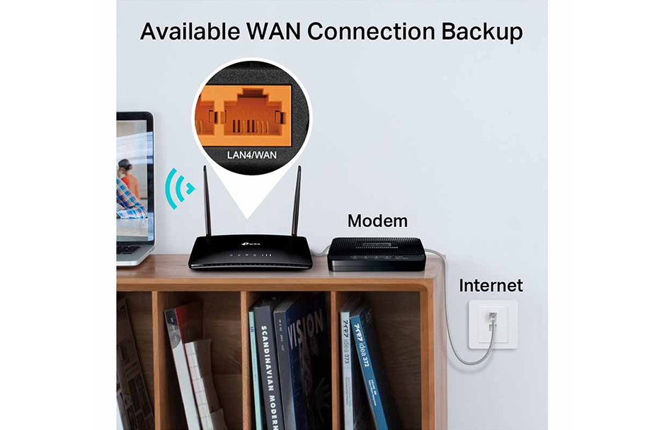 طراحی یکپارچه آن به شما اجازه میدهد که با قراردهی سیم کارت درون اسلات مورد نظرش و روشن کردن مودم، به شبکه اینترنت 4G دسترسی داشته باشید و از شبکه وای فای لذت ببرید. حداکثر 64 دستگاه از قبیل لپ تاپ، گوشی هوشمند و ... می توانند به صورت همزمان به مودم 4G LTE متصل شوند و به اینترنت دسترسی داشته باشند. 3 عدد پورت LAN و 1 عدد پورت WAN/LAN پشت مودم قرار دارد که برای اتصال لپ تاپ، کامپیوتر، پرینتر و ... را به کمک کابل شبکه ممکن خواهد کرد. درگاه WAN/LAN به شما این امکان را میدهد که روتر شبکه را به کمک کابل به مودم روتر متصل کنید و اتصال 4G LTE را از طریق روتر به صورت بیسیم در دسترس کاربران قرار دهید.