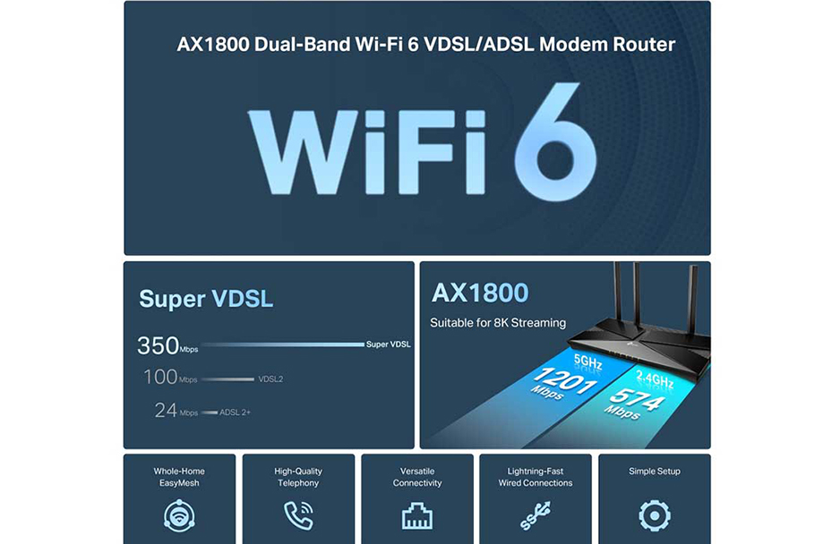 قابلیت WiFi-6 مودم روتر ADSL بیسیم و گیگابیت Archer VX1800v